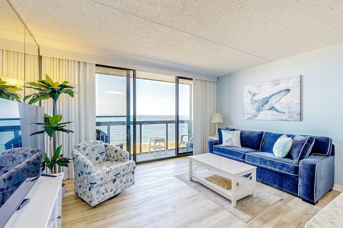 Efficiency/studio condo oceanfront in Golden Sands. Queen size Murphy bed, couch, loveseat, full kitchen, bathroom, washer & dryer, ac/heat, parking, awesome amenities. This building is beautiful with amazing views. We clean & stock this condo ourselves so you'll get the owners personal touch without the crazy extra fees that rental companies charge. I love to make everyone's stay as wonderful as possible. Please read entire listing.