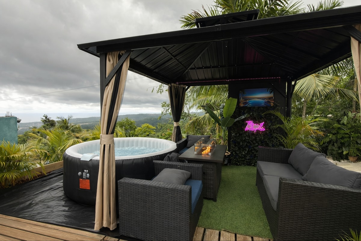 Wake up to panoramic ocean views and unwind in your private hillside escape just 12 mins from Ocho Rios. This luxury retreat is designed for relaxation and unforgettable moments — featuring our private hot tub, shower, gym, cold-plunge Bath, cozy gazebo lounge, and breathtaking sunset views. Whether you’re sipping wine under the stars, enjoying a movie night on the 75” screen, or simply escaping the noise, this space delivers a true “hidden gem” experience guests never want to leave.