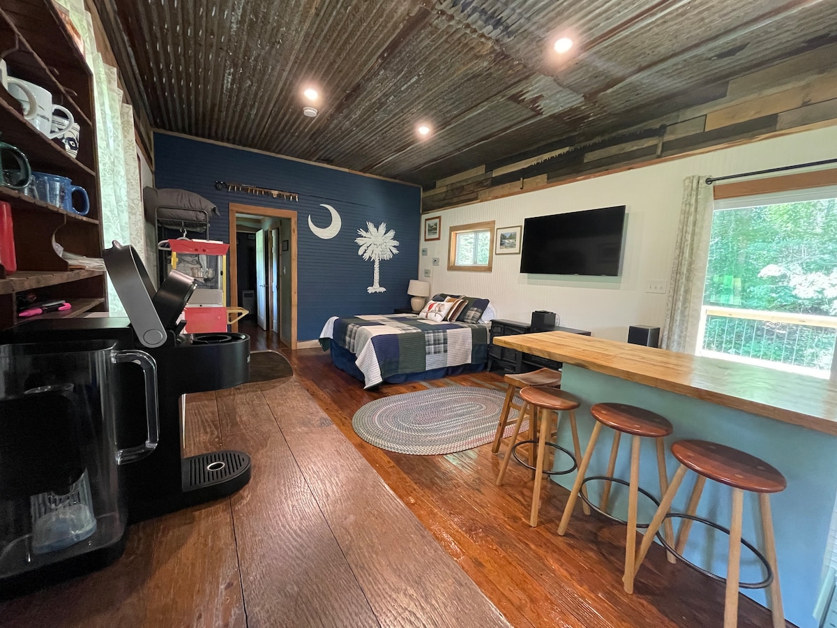 Relax at this cozy lakefront studio on Lake Keowee with access to kayaks, paddleboards, a dock, fire pit, and pool. Perfect for unwinding or exploring, it's close to state parks with hiking trails and just a short drive to Clemson University-great for football weekends. The studio includes a full kitchen, private bath and in-unit washer/dryer providing all the comforts of home. Whether you're here for adventure or relaxation, this lakeside retreat has everything you need.