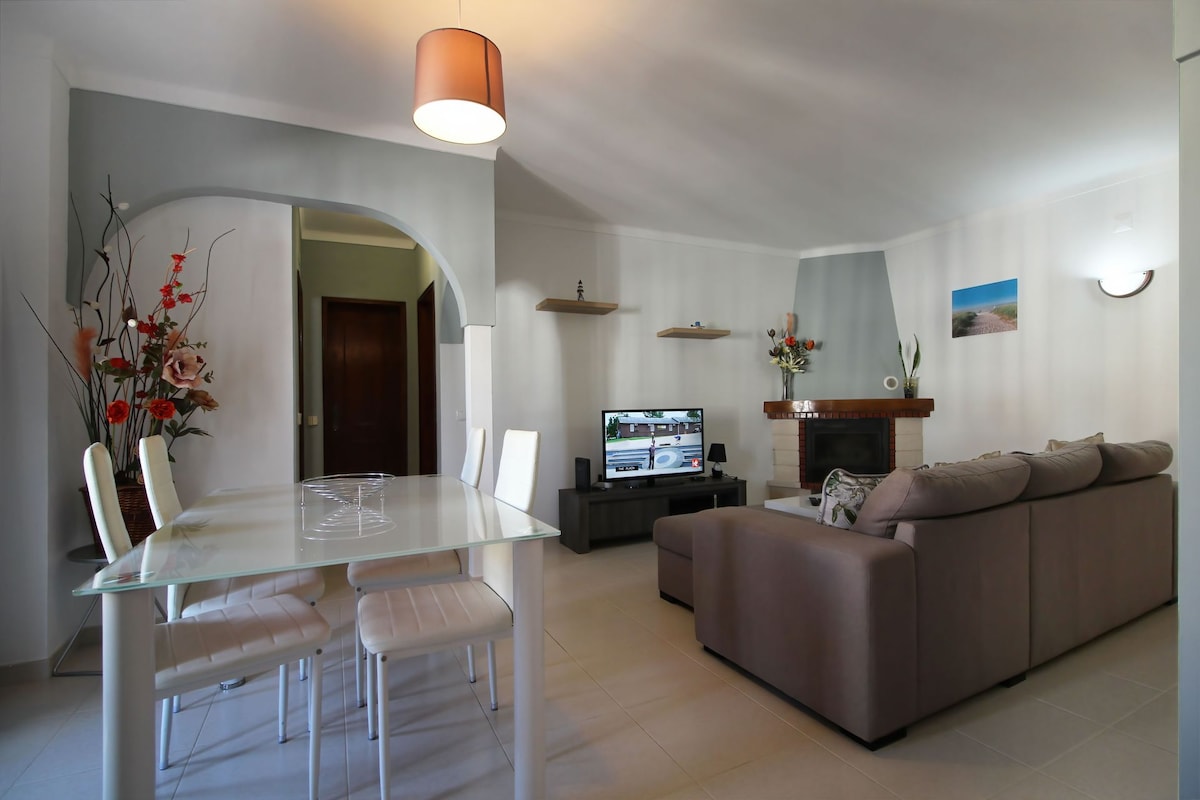 Apartamento T2 no centro da Vila,2 quartos 1 com cama de casal e outro com 2 camas. WC completo ,cozinha bem equipada com tudo o necessário com cesso ao jardim, sala de estar ,de refeições. Jardim privado com barbecue e zona de refeiçoes. Aqui pode descansar, ouvir os passarinhos no meio da Vila. Zona calma Excelente para família. Todo o comércio junto, incluindo restaurantes, praça, talho, supermercado .