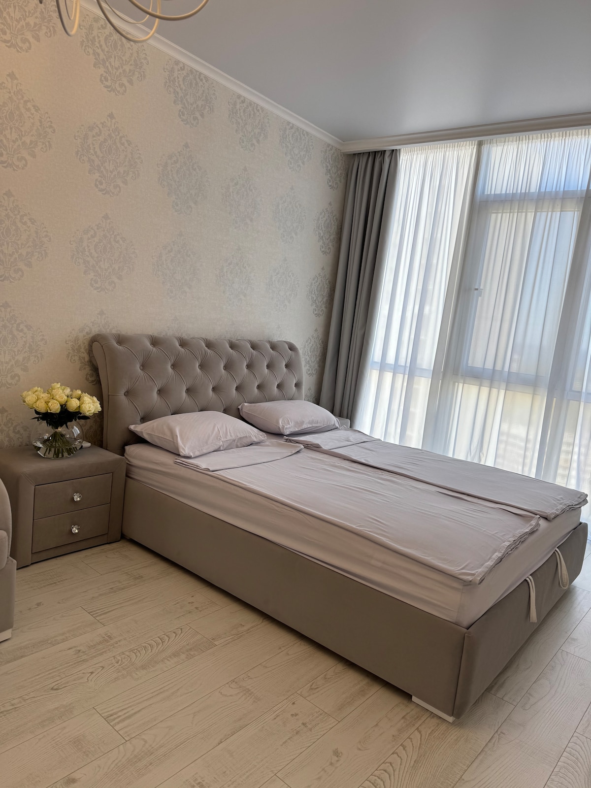 Отлично проведите время всей семьей в этом стильном и уютном жилье. Новая квартира находится в жилом комплексе у моря, к Вашему удобству предоставляем место в паркинге бесплатно, откуда Вы сможете на лифте подняться в светлую квартиру с балкончиком. Вашему удобству предоставляем всю необходимую бытовую технику, посуду и средства гигиены. Кухня выполнена в итальянском стиле, а спальня наполнена мягким светом, где можно отдохнуть и набраться сил