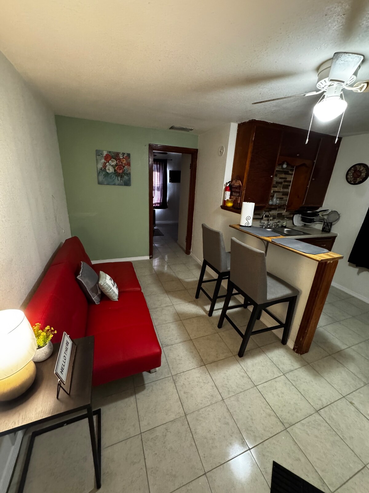 This sits on an acre property with another 5 room unit. The people on the property are mostly workers from out of town who need a quick stop, a week to find an apartment, or month to month stays. The bed size is Queen. The door has a code lock to checkin at your convenience. Part of the road is unpaved and shown in a picture. Please take this fact into consideration before booking. I cannot pave the road as it does not belong to me.
