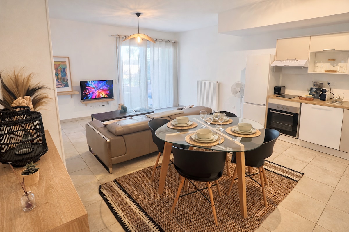 Logement classé 3 étoiles Meublés De Tourisme Havre de paix avec jardin privé et garage, appartement climatisé idéalement situé dans le très prisé quartier de Port Marianne, à 10 mn de la Comédie et 10mn à pied du fameux « Marché du Lez ». Le bassin Jaques coeur, à quelques pas, où il fait bon vivre et les bords du Lez offrent d'agréables promenades ou sorties dans les très divers bars et restaurants. Tous commerces de proximité à deux pas de la maison.
