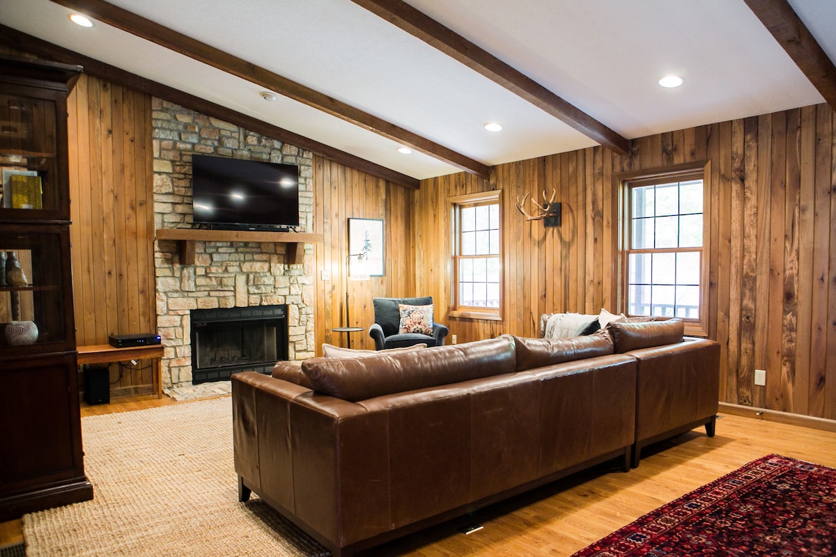 Sandstone is a luxury chalet perched atop 37 acres of private nature preserve, minutes from the area's favorite attractions, perfect for families and groups. - Sleep up to 12 - Private hiking trails on the property, just for you - Game room w/ pool table + video games and more - Amazing wraparound deck w/ hot tub and mountain views - Multiple smart TVs - Electric fireplace - Fully equipped + stocked kitchen - Outdoor dining area + fire pit No shortage of entertainment for everyone!