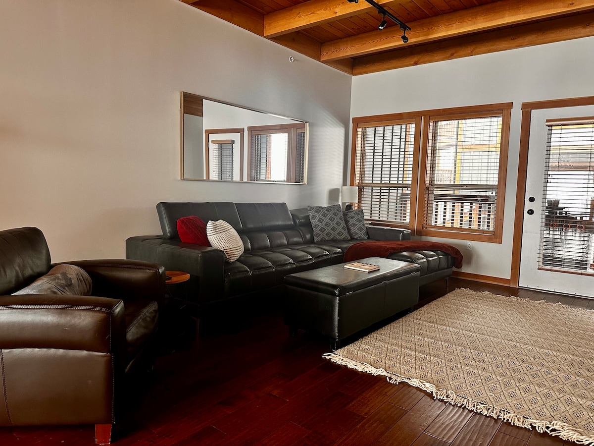Nestled alongside the Grandfather Trail, Hidden Gold Hideaway is a sought-after year-round chalet. Ski-in/ski-out during the winter, mountain biking and hiking during the spring/summer. 4 bed, 3.5 baths, a fully equipped chef's kitchen and a slopeside hot tub will keep guests well-fed and relaxed. The upper loft has a large bunk room for kids and the unit is dog-friendly! During the winter, the village comes alive with dining, gear rental, tube park, as well as a skating loop and hockey rink.