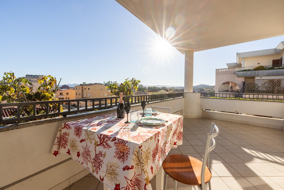 Grazioso appartamento a meno di 5 minuti a piedi dal centro storico completamente isolato da rumori. Vista mozzafiato su parte dell'Arcipelago maddalenino. La casa è dotata di aria condizionata, lavatrice, parcheggio privato coperto. L'appartamento si trova al secondo e ultimo piano di una piccola palazzina di sole 6 unità. L'ingresso da accesso alla zona soggiorno/cucina a vista con divano letto. Camera con terrazzino attrezzata con letto matrimoniale e letto a castello a scomparsa.