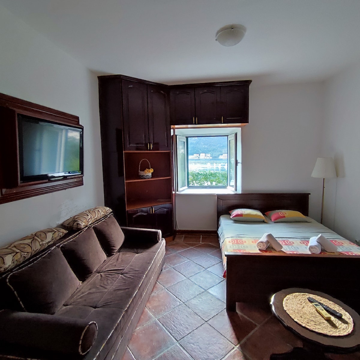 Welcome to our stunning one-bedroom apartment nestled in a brand-new, beautiful building. Enjoy breathtaking panoramic views of the entire Bay of Kotor right from your window. This fully equipped sanctuary offers the perfect blend of comfort and luxury for your stay. Immerse yourself in the charm of the region while indulging in modern amenities. The Old Town is just a few minutes' drive away or a pleasant 20-minute stroll by foot. Your unforgettable getaway awaits!