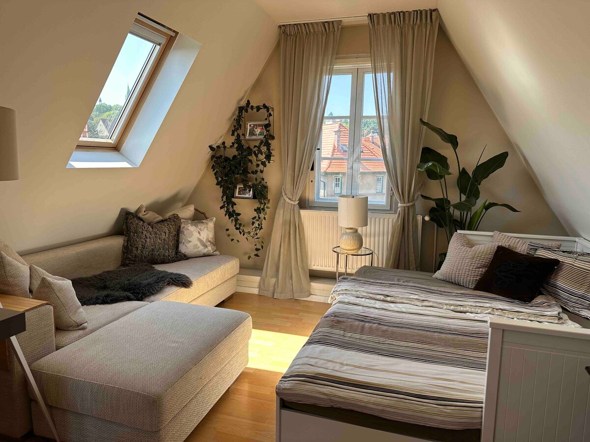 Experience unforgettable moments in our unique apartment, located in the heart of the historic New Town. This exclusive location opens the door to the city's attractions and immerses you right into the depths of its culture. Inside our apartment, you will find harmony and comfort. A double bed and a sofa bed provide the perfect space for rest and relax. You will be pleased with a modernly equipped kitchen, 2 bathrooms, and a separate study, or the possibility of using the sauna in the house.