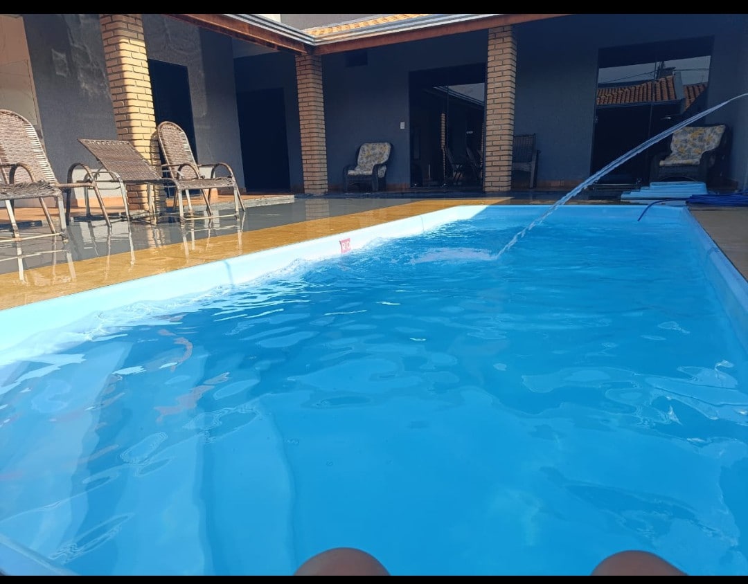 Casa muito agradável com acomodação para até 12 pessoas. Possui piscina com aquecimento solar, hidromassagem e cascata, área gourmet com churrasqueira, 2 suítes independentes com ares condicionados e ventiladores de teto, Tv à cabo, Wi-fi de alto desempenho e garagem para 03 veículos. Está muito bem localizada em uma área de vasto comércio, com 2 supermercados, a 3,4 km do Thermas dos Laranjais, 3,0 km do Hot Beach e 3,0 km do Vale dos Dinossauros.