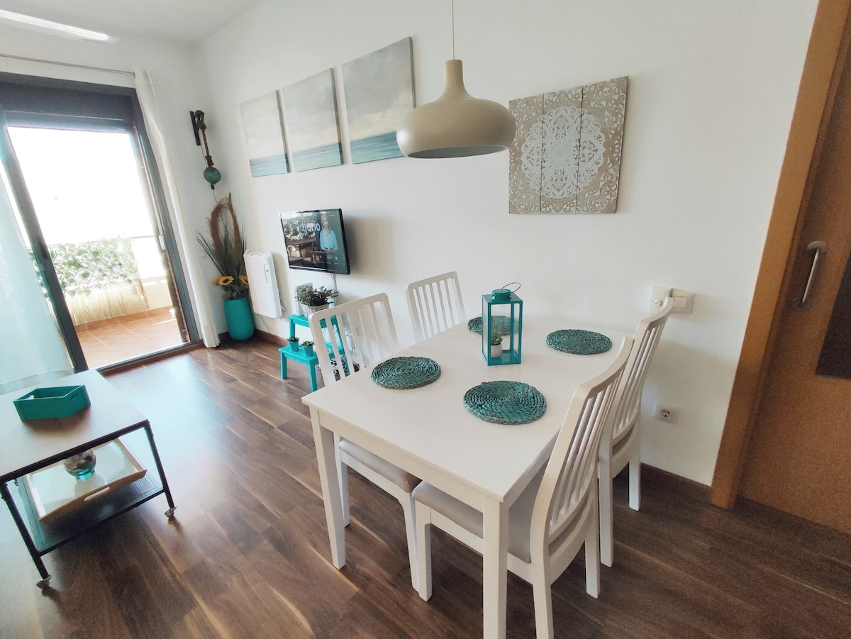 A beautifully refurbished in March 2022 and fully redecorated in November 2024. Equipped to a high standard with all modern appliances for your most comfortable stay. It is located in a unique and not widely known Spanish holiday destination. A hidden gem. Sweeping mountains and magnificent sandy beaches surround the bright apartment. The apartment is designed to offer both outdoor and indoor living; In summer, the living room and terrace follow an open view to the beach and mountains.