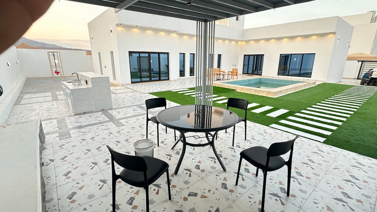 Ajwan beach house is the best getaway from the city to the ultimate Jabal Sifah resort. An amazing place for relaxation with family and friends. The house is newly developed and was handed over in December 2022. The beach house consists of three bed (two queen size beds and two single bed in one room) . The out door area has a stunning view of the beach and private swimming pool.