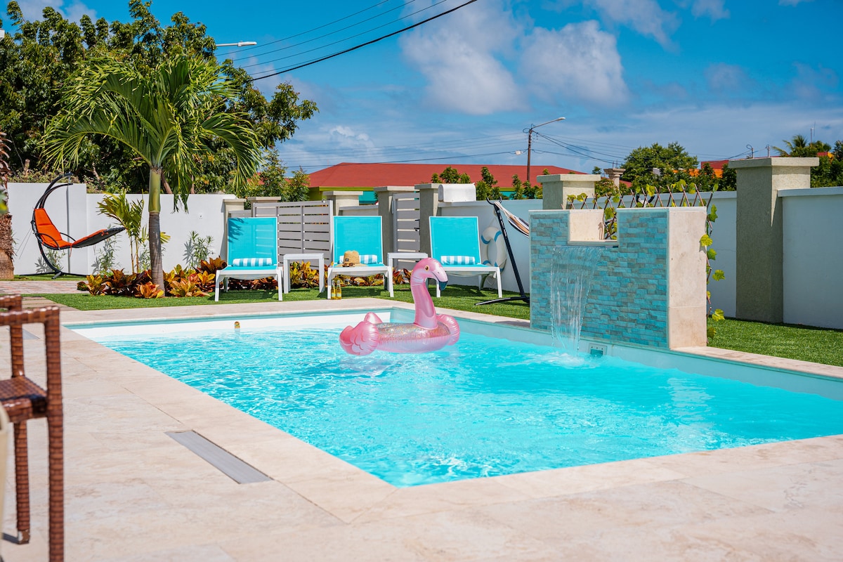Everything you desire and beyond for your perfect tropical vacation. ✔ Private pool / Apartment (private entrance) in a safe villa neighbourhood ✔ Spacious patio with shaded outdoor seating/Palapa ✔ Free WiFi & Parking ✔ King bed & pillows /new mattress for ultimate comfort for your vacation ✔ Caribbean with clean Modern Decor ✔ Beach chairs & Cooler ✔ Fully equipped kitchen (with dishwasher) ✔ A/C & Hot water ✔ Beautiful night lighting in Patio/pool area for the ultimate relaxation.