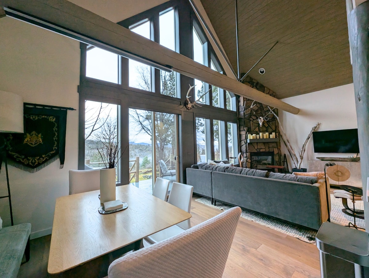Relax and enjoy crisp mountain air in beautiful wooden seclusion with large cathedral windows, wraparound deck, vaulted Great Room and a cozy woodstove to warm your toes. Step down to the game room and shoot pool, play piano, sip wine and catch a movie on a wraparound leather couch/recliner. Head nearby to ski🎿 , hike, bike🚴, climb🧗♂️ , fish🎣, kayak, and golf⛳️ + free remote yoga🧘 during your stay. Finish your day by soaking those weary legs in a hot tub under the stars ✨ and repeat as needed.