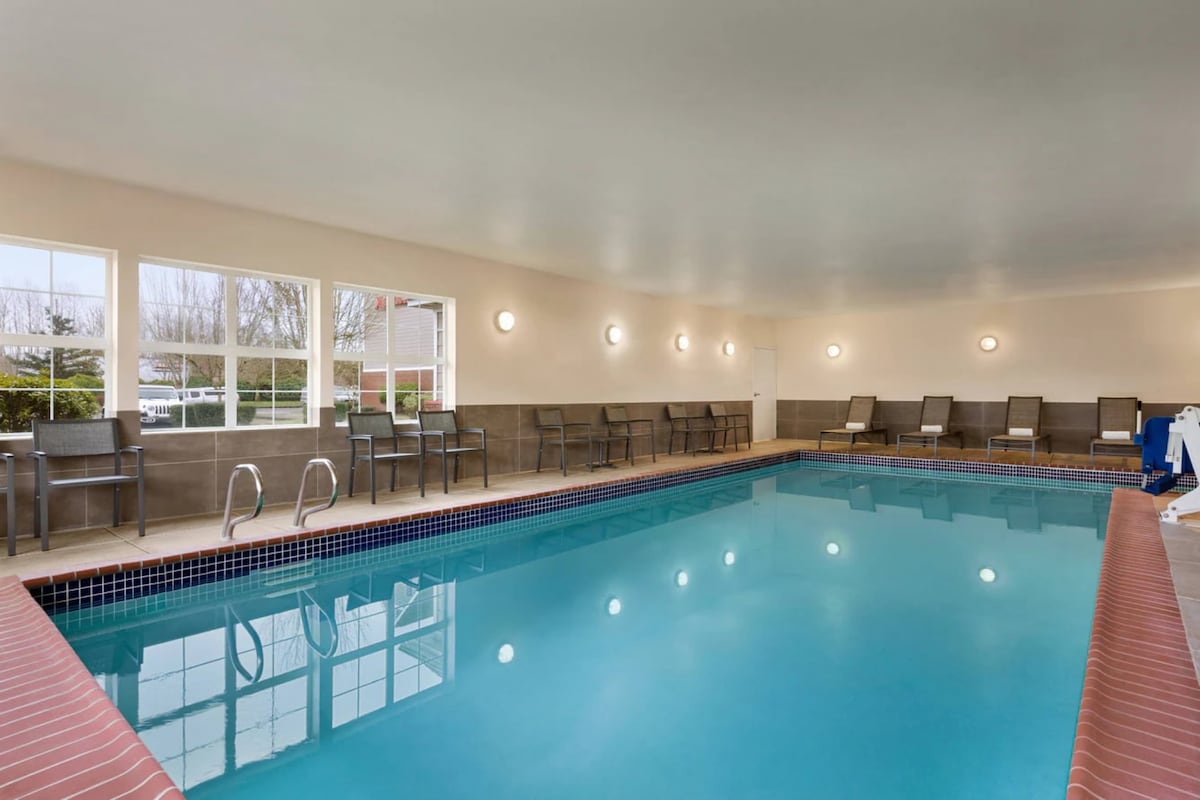 两张标准双人床|室内游泳池。健身房和靠近机场