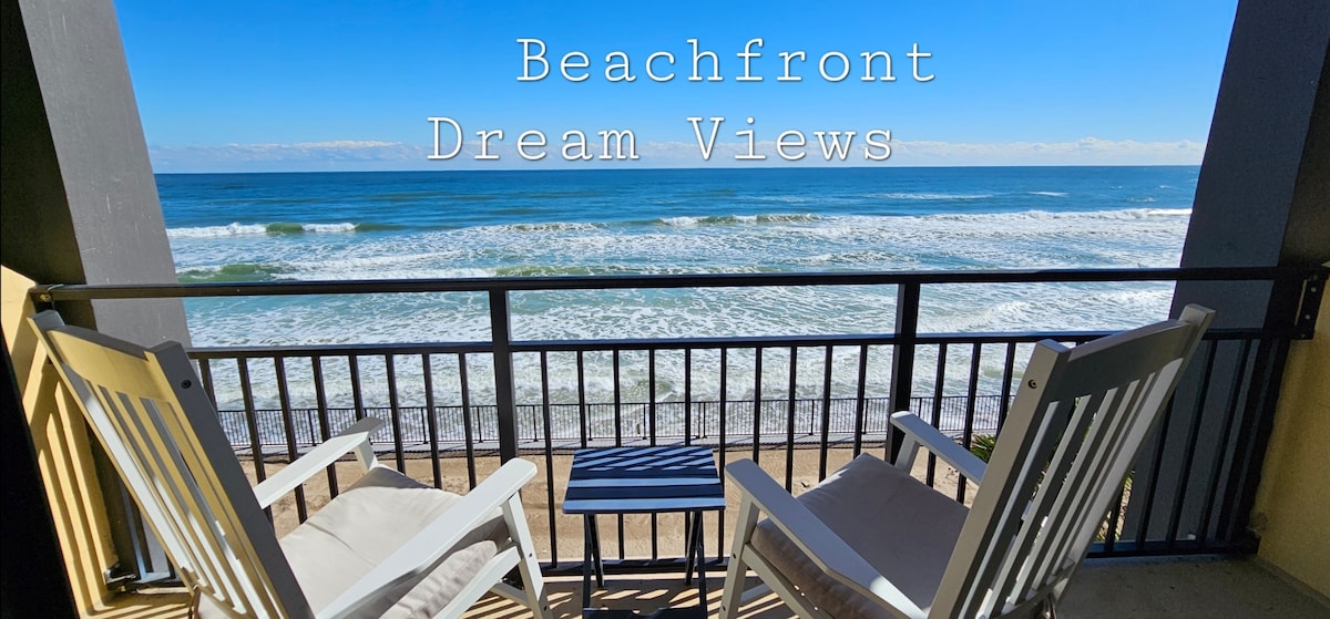 Note: Main building hallway flooring will be removed and reinstalled between 8 AM–5 PM on Oct 27–31 and Nov 17–21. There may be noise associated with this work. Steps from the sand, this 2 bed / 2 bath direct oceanfront condo offers amazing panoramic ocean views, a large balcony, and everything you need for a perfect stay. Enjoy free parking, your own free washer and dryer, a large newly renovated oceanfront pool, beach gear, and fast Wi-Fi. Sleeps 6 with comfy beds and 3 large streaming TVs.