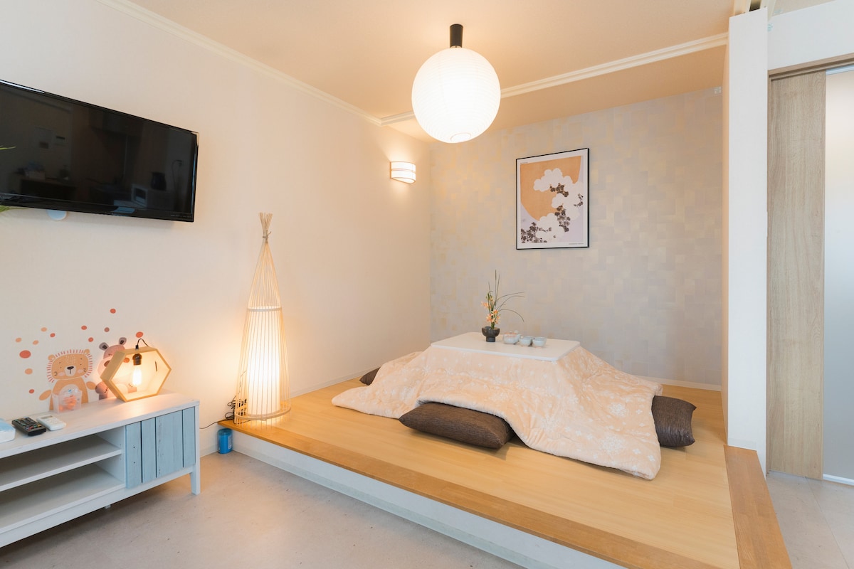 💕这套房源位于安静的居民住宅区,独立一户建3LDK,专享75平方米整个私密空间,像在家一样自由,温馨的卧室,柔软 温暖的五星酒店床品让您有舒适的睡眠!离最近的JR塚本车站(Tsukamoto)步行➡️5分钟左右 ✨民宿周边有繁华商业街,拉面、烤串、咖啡蛋糕店、麦当劳、肯德基等快餐美食店,药妆店、蔬果店、life 和板急等大型超市,有全家 、711、罗森(步行➡️2分钟)便利店,公园、银行等设施齐全,吃 行 购等都非常便利。 🌸这里毗邻淀川河,风景优美,视野开阔,也是马拉松爱好者和自行车爱好者的天堂,对岸的梅田商业区尽收眼底,美丽的夜景心旷神怡... 🌸🚇可直达京都 大津 三ノ宫 神户 须磨 舞子等 梅田/大阪站➡️3分钟 新大阪2站➡️9分钟 心斋桥4站➡️18分钟 环球USJ➡️20分钟 神户、通天阁、大阪城公园、海洋馆➡️30分钟 奈良➡️45分钟 关西机场➡️1小时左右 附近🅿️➡️30秒