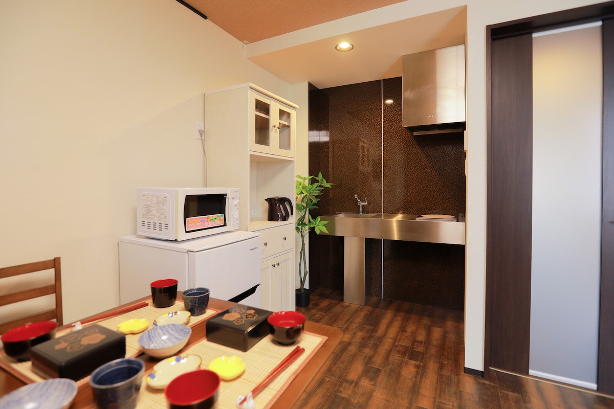 Entire home for up to 12 guests. A 3-min walk to the subway with quick access to Namba, Shinsaibashi, and Nipponbashi (about 10 minutes). Cozy Japanese-style house with modern amenities, including a kitchen, Wi-Fi, and a washer.