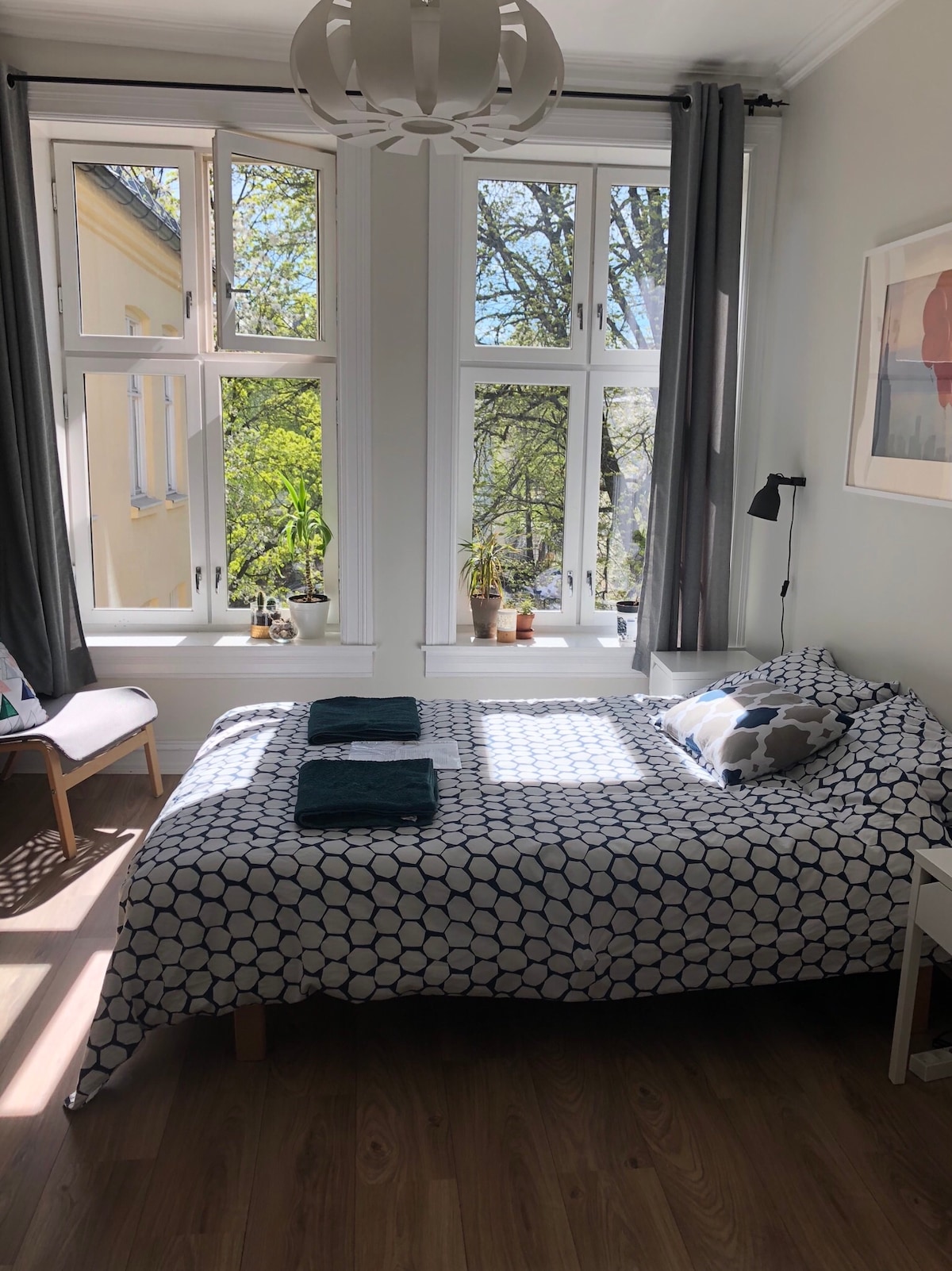 PLS READ FULL DESCRIPTION & HOUSE RULES BEFORE BOOKING. Cosy & bright room (12m2) with SHARED kitchen and bathroom, located in central & a stone throw away from Royal Castle. Fancy neighbourhood within walking distance to tourist points, shopping st, embassy, restaurants, coffee shops, bakery, take away & supermarket. Easy access from/to airport & Oslo Central Station. Great for last min booking, 24-48hr stay, business trips, travelers who want to explore Oslo by feet. Cat in the apartment!