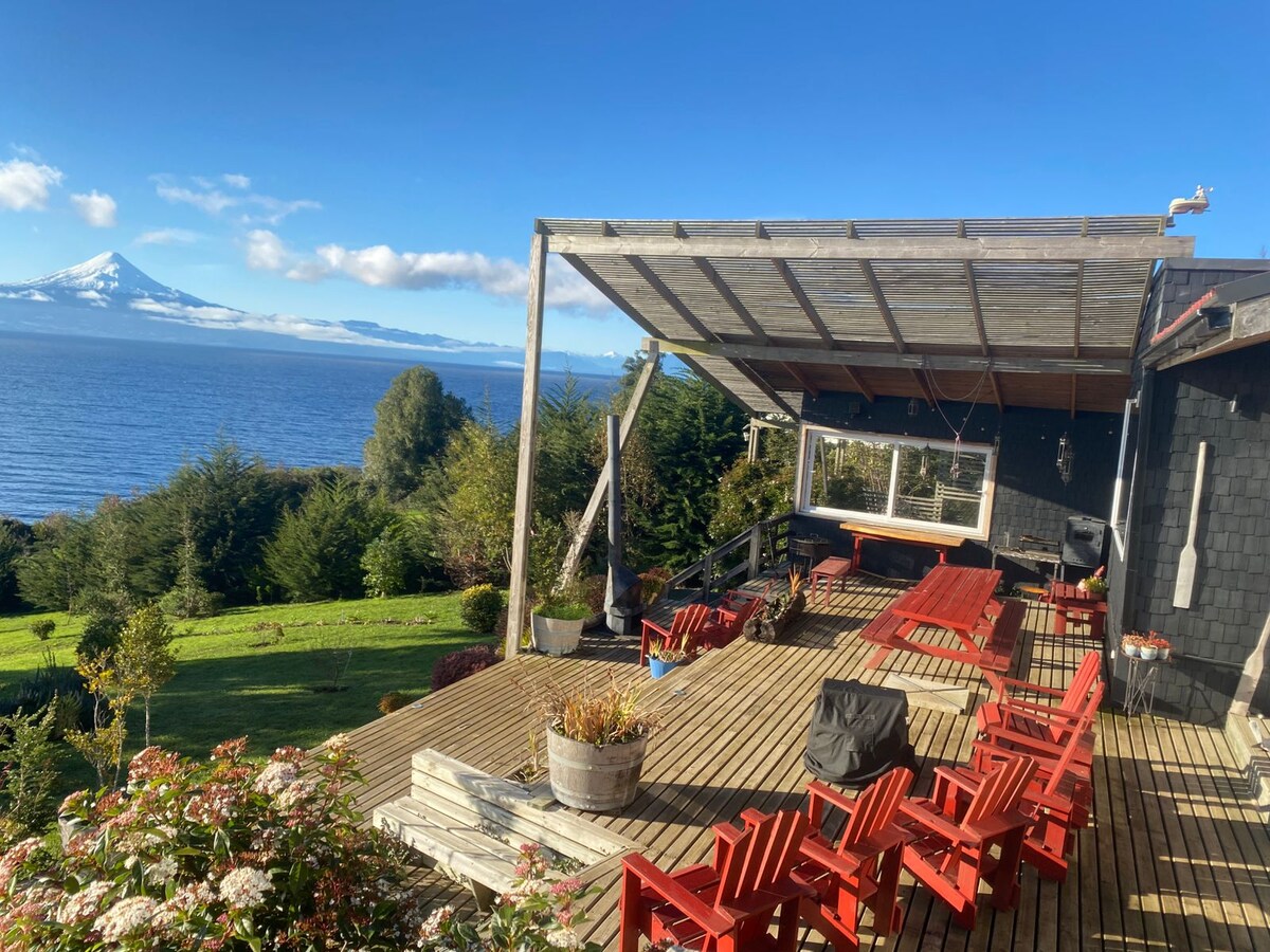 Preciosa casa de campo en Lago Ranco, con vista al complejo volcánico Cordón del Caulle. Ubicada a 10 min de la playa y 30 min del Parque Futangue. Tiene dos dormitorios; el primero con walking closet, baño en suite, una cama doble y 2 camas individuales. El segundo con una cama doble y baño fuera de la habitación. Living y comedor de doble altura amplios y luminosos y cocina americana completamente equipada. Terraza con hot tub para 6 personas, living , comedor y parrilla de asados marca Weber.