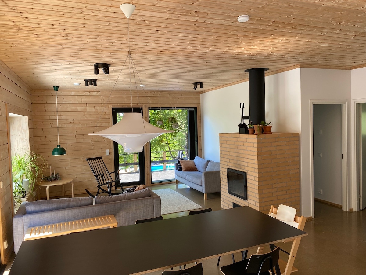 A house with garden and a heated swimming pool for the summer in a quiet area. This child-friendly destination is located 5 km from the center of Vaasa. The log house was built in 2019 and has a/c for hot days. The level of equipment is very comprehensive, because we live in the place (5 children + dog) outside the summer time. Distances: - Supermarket 1 km - bus stop 0.2 km - beach 7 km - center 5 km - dog park 0.3 km - playground 0.2 km - outdoor recreation areas 2 km
