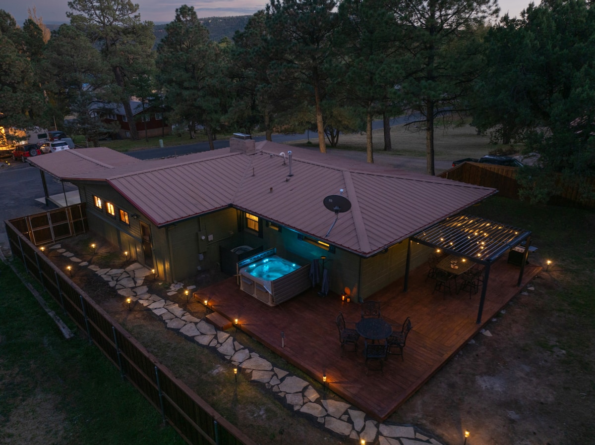 Welcome to Lazy Elk Escape, a cozy 3BR, 1.5BA home in the heart of Ruidoso. Enjoy frequent visits from wild horses, deer, elk, and birds! Walk or short drive to Midtown shops, wine tastings, and restaurants. Located 0.9 miles from the Albertsons grocery store. Relax in the private hot tub, grill on the patio, or unwind with mountain views. Features include a full kitchen, Wi-Fi, Smart TV's, a washer/dryer, and a private fenced yard. Perfect year-round for skiing, hiking, and peaceful getaways.
