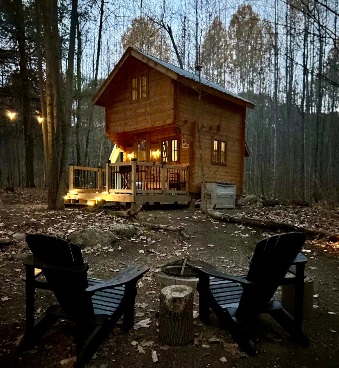 Welcome to La Khabine! This cozy, modern cabin comes with all you need to relax and connect with nature. Enjoy a glass of wine with the sound of a crackling fire in the wood burning fireplace. Take in the view of the forest through the surrounding floor to ceiling windows. Relax in the private outdoor cedar barrel sauna. Natural self-care products, firewood, laundry soap, and high-speed Wi-Fi are all complimentary. We hope you'll love our little cabin of windows as much as we do :)