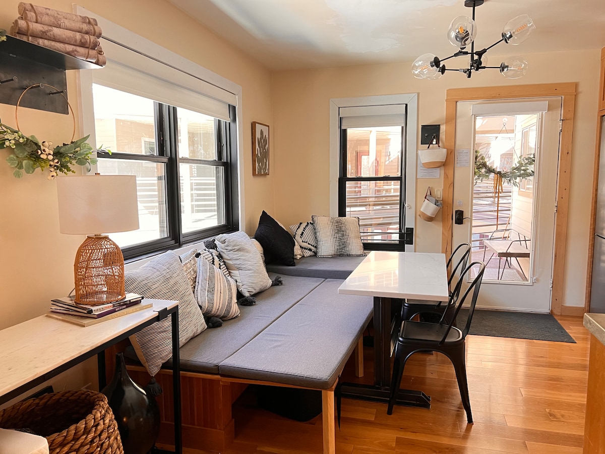 Welcome to our 1 bed | 1 bath condo in Main Street, Ouray. With its charm and capacity to comfortably sleep four guests, this is the ideal retreat for couples, friends, or small families seeking an unforgettable mountain getaway. Upon entering our condo, you'll be greeted by a warm, inviting atmosphere combining modern luxury with rustic mountain aesthetics. The open-concept living/ dining/kitchenette area has breathtaking town views and mountains.