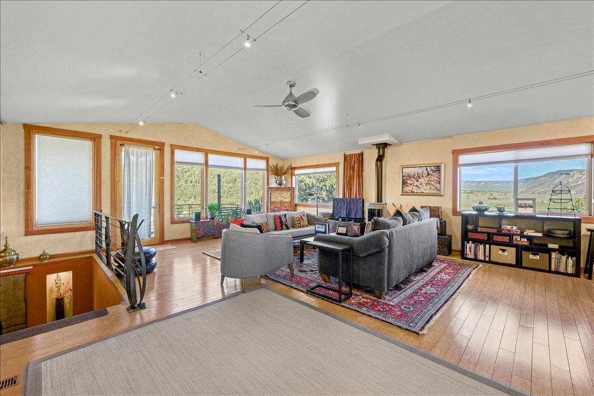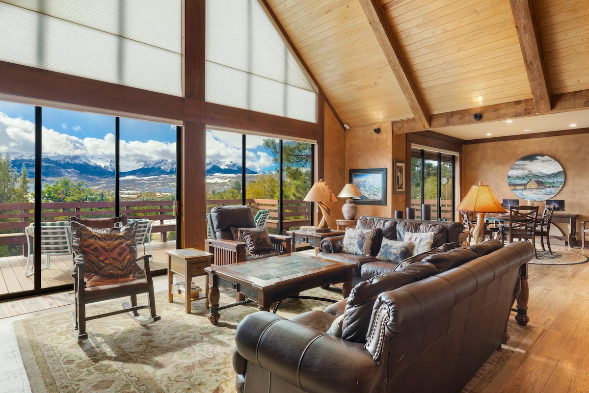 Bring your family! Beautiful home with open floor plan, deluxe master bedroom, and luxurious master bath. Located between Ouray and Ridgway, it is the perfect location for all of your vacation desires; the best for hiking, climbing, biking, jeeping, skiing; really, any outdoor activity. Mount Abram is down the valley from the back patio, a lovely sight. Corbett Peak is seen while looking out the kitchen nook. Every day the view is different. Super fast fiber internet! STR-1-2024-057