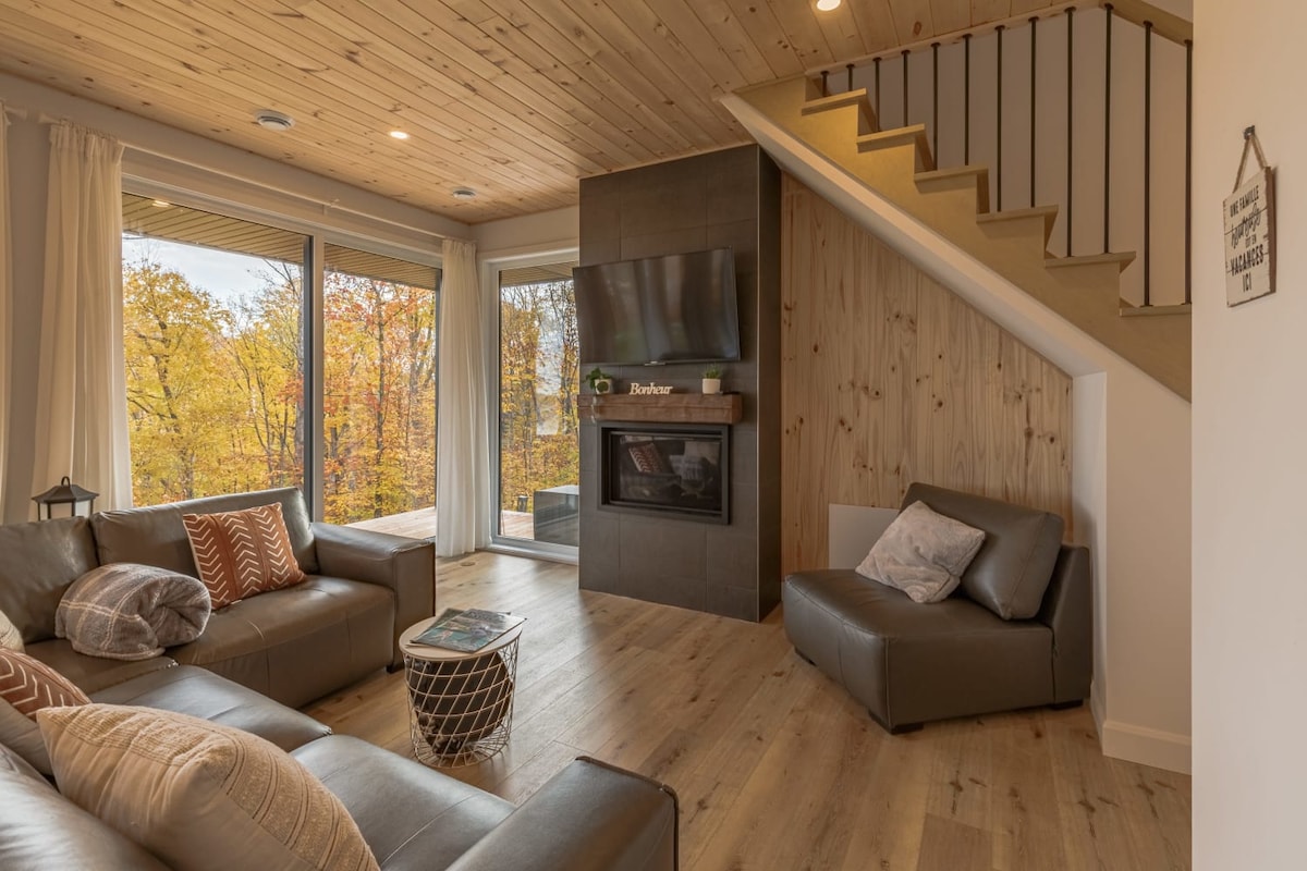 New luxurious construction with a spa, sauna, and pool. Only 20 minutes from the Mont-Tremblant ski slopes and the national park. Open-concept spaces, 2 bedrooms to accommodate families and friends. Indoor fireplace and incredible views. Ideal for rejuvenating in nature while enjoying all the amenities. CITQ: 318521