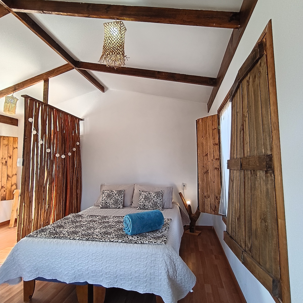 Lugar encantador, lleno de naturaleza y tranquilidad, especial para desconectarse de la rutina, en cuerpo, mente y alma. La cabaña esta totalmente equipada y tiene exclusividad privada para el huésped y así pueda disfrutar con su pareja, amigos y/o familiares de momento memorables.