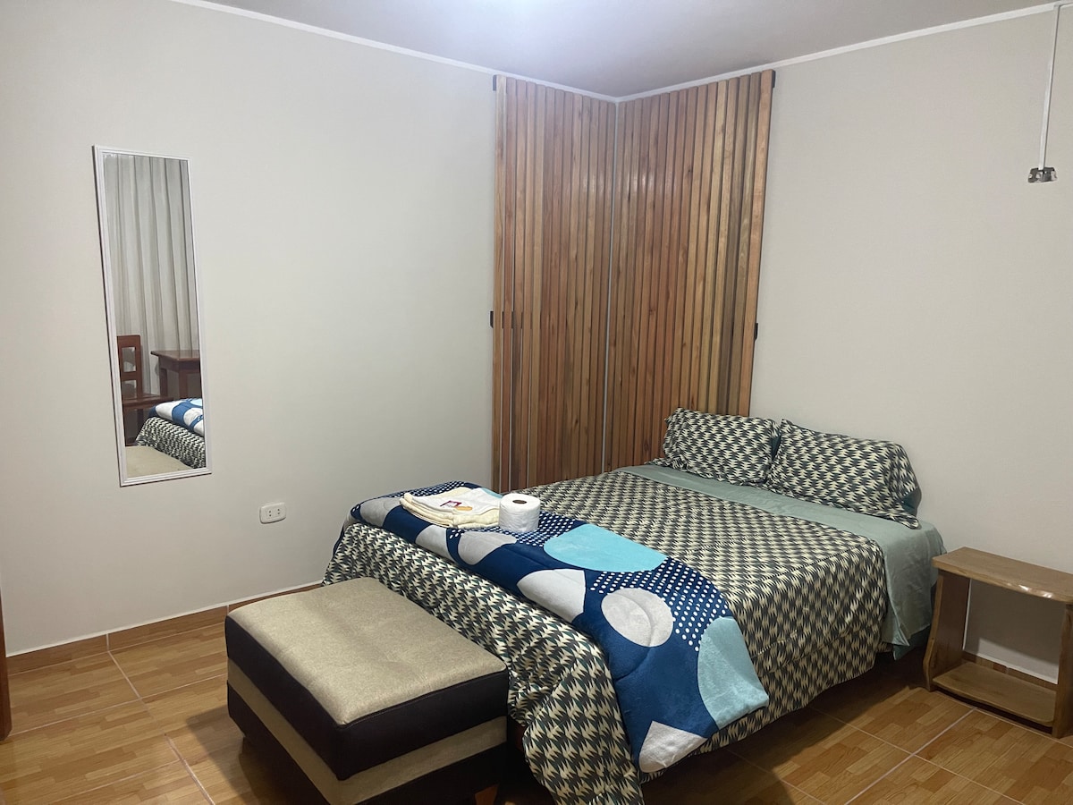Un espacio sencillo, cálido y acogedor, ideal para relajarte después de un día lleno de aventuras. Disfruta de un balcón privado, wifi, TV Smart y agua caliente. La ubicación es perfecta: a solo 3 cuadras del terminal de buses, a 2 cuadras del ex campo de aterrizaje convertido en un inmenso parque verde, y a unas cuadras del parque principal. Un lugar tranquilo, práctico y bien ubicado para recargar energías y seguir disfrutando de tu viaje