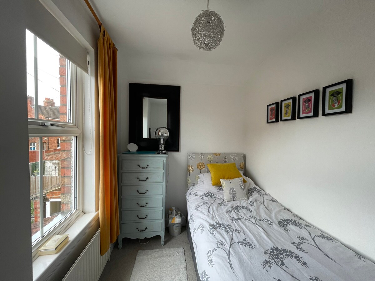 Private access, front door leads into living area and patio doors into garden. Fully furnished, sofa bed, desk, tea, coffee making facilities, microwave, iron and free Wi-Fi. Upstairs, ensuite shower room, double bed, chest of drawers, wardrobe and TV. A door to the main house kitchen links the annex and remains locked. We do respect our guests privacy but are available if need be. A short walk from town/train stations and supermarkets, restaurants and pubs located near by.