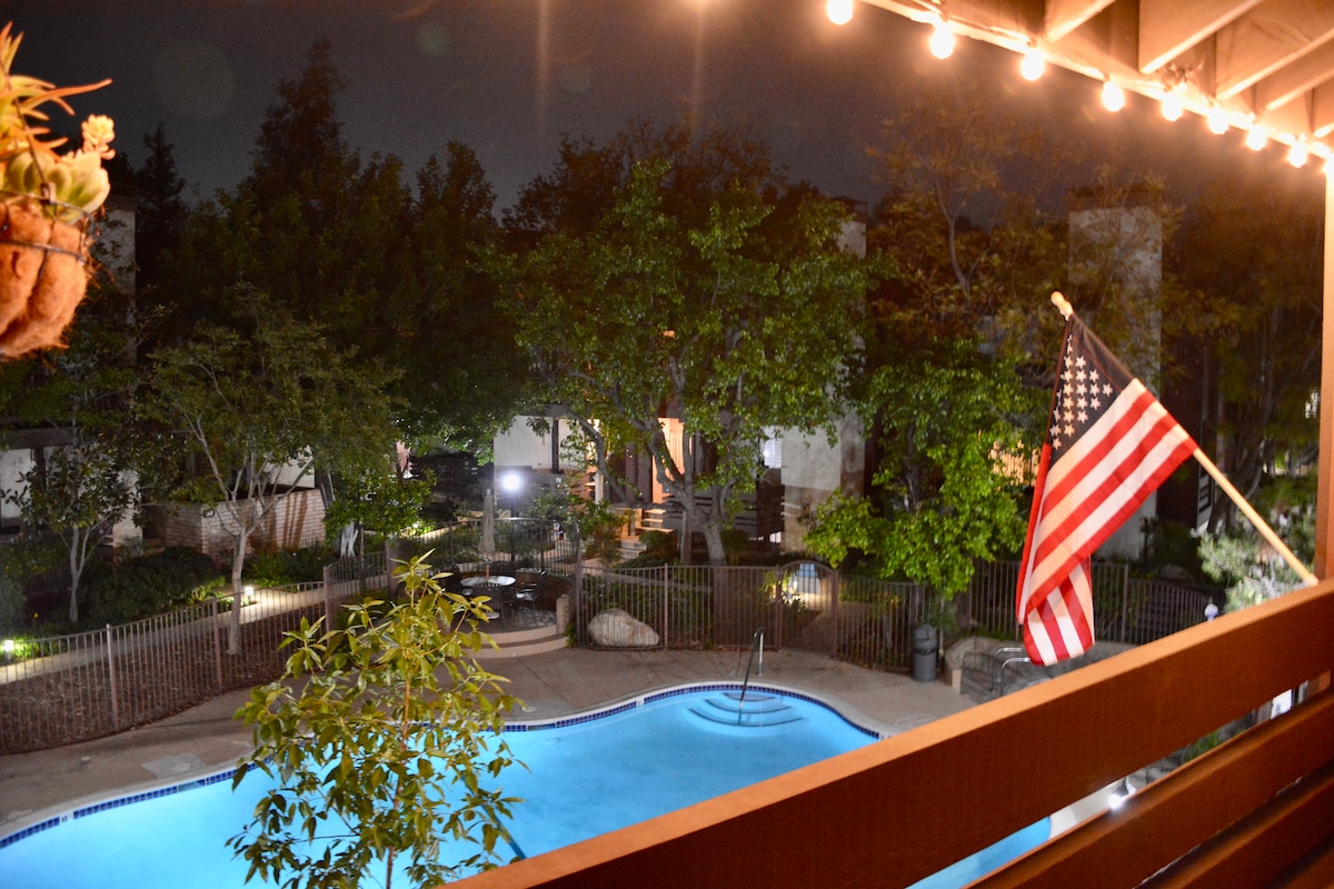 This room has 1 Queen bed Fully renovated bathroom We have 2 cats Mocha & Mia. Full use of kitchen Washer/Dryer in unit please ask to use Community Pool and Jacuzzi until 10pm. Please contact me if you need only 1 night. Walk to Starbucks Restaurants & shops w/in 5 mins. Grocery stores 5 min walk. Close to shopping Bus stop within 3 min walking distance. Close to parks with hiking trails. 20 minute canyon ride to Malibu Beach. 45 mins from LAX w out traffic 30 mins from Burbank Airport