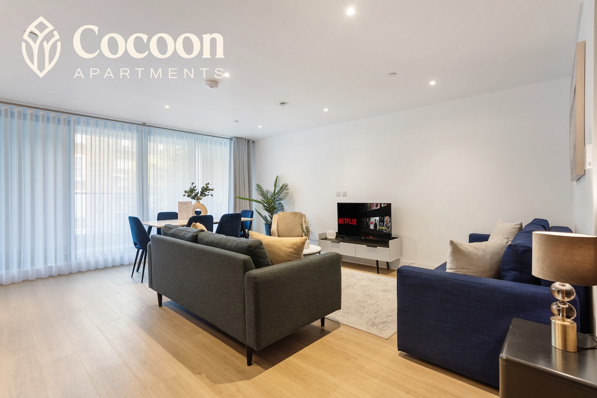 2 Bedrooms – Each with luxurious king-size beds 2 Bathrooms – one with a full-size bath Fully Equipped Kitchen – Grind coffee machine, Joseph Joseph kitchenware, 5 ring gas hob, dishwasher, full size fridge freezer Smart TV & Comfort Cooling – For year-round comfort and entertainment. Weekday concierge and lift to all floors. Perfectly blending comfort and practicality, this apartment offers an exceptional living experience. We also happen to be London's No.1 sustainable operator!