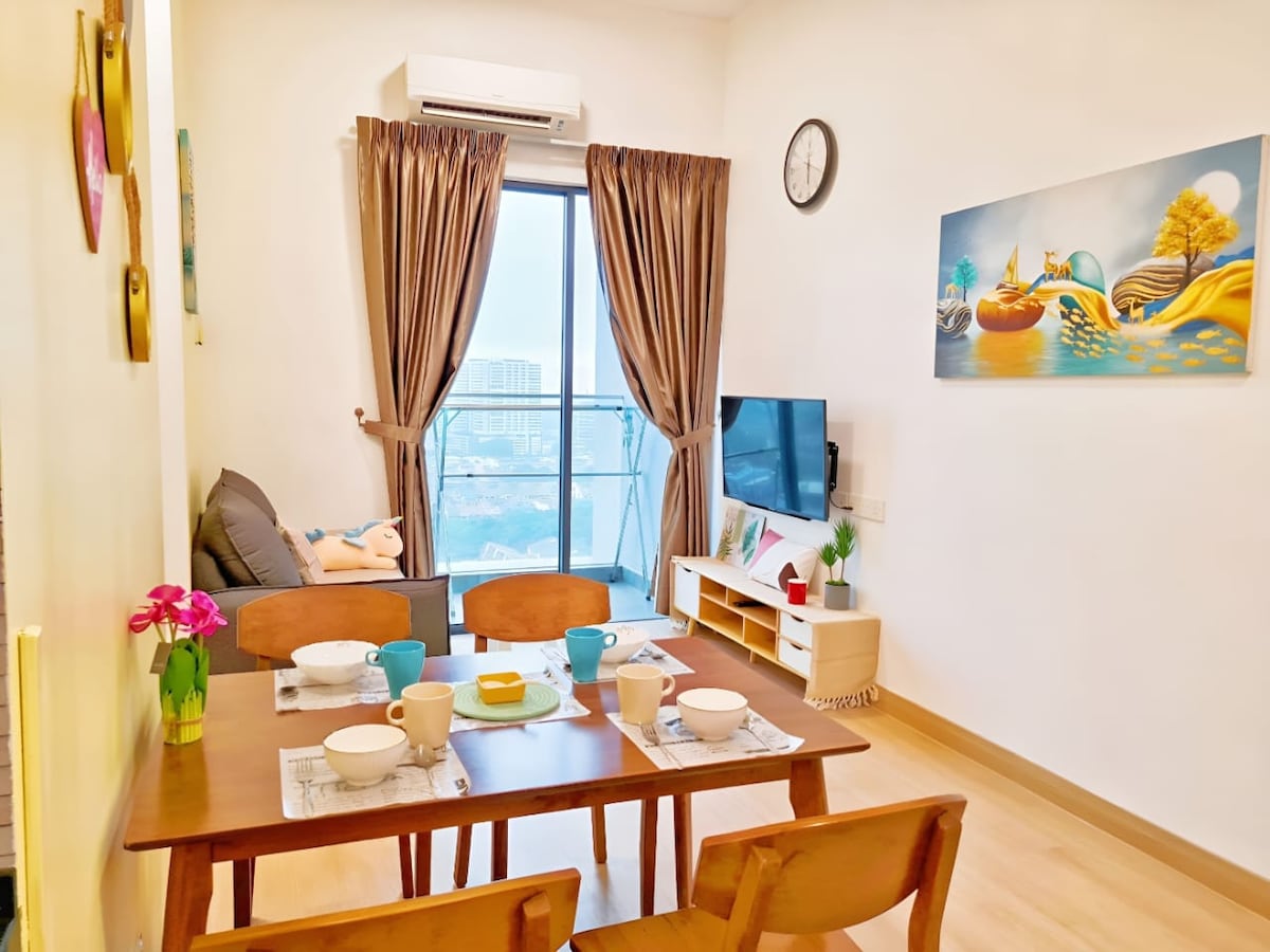 Our unit is suitable for family & friends and working people. Wifi & Free Parking provided. Aircond in Living room, Master bedroom and Medium Room. Fan in 3rd bedroom. Shopping Mall below the condo. McDonalds, Burger King, Korean CU Store, 7-11, Western & Local Restaurants, Watsons, ATM ,Cinema are available. Aeon Mall and The Mines Shopping are nearby around 5km. 时尚和现代化公寓,适合家庭,朋友聚会,工作人士。 我们提供 网络以及免费停车位。 客厅,主卧及二房有冷气,三房有风扇。 公寓楼下的商场有 快餐店,便利店,餐厅,提款机, 电影院。 公寓附近还有 Aeon Mall 和 The Mines