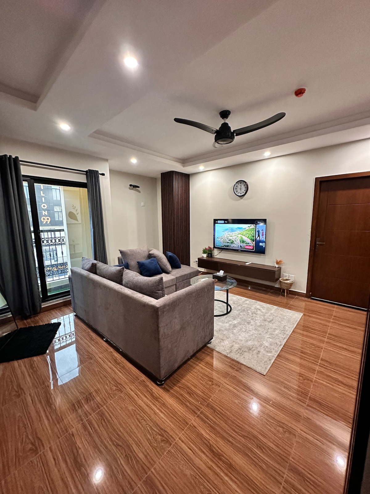 This Fully Furnished Apartment Includes: 4 Air Conditioners. Iron & Ironing Board Microwave Oven Refrigerator and Freezer Cutlery Set Soft Drinking Water Electric Kettle High-Speed Wi-Fi. Flat-Screen TV. Cold Water kitchen and bathrooms. Regular Cleaning Service. Indoor Games. Air Fresheners. Tea essentials. Comfortable bedding and linens Towels and basic toiletries Cookware (pots, pans, utensils) Dining table and chairs Wardrobe and storage space & more…