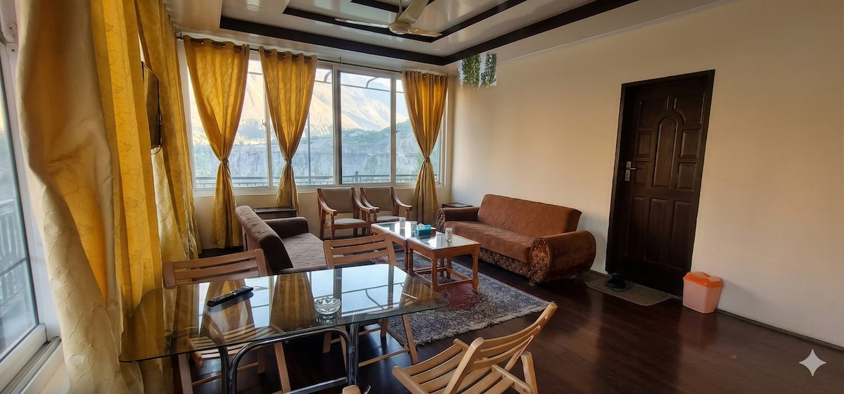 A serene, traditionally built riverside resort nestled in the heart of Gulmit, Upper Hunza. Diwan e Hunza blends Wakhi architecture with modern comfort—offering spacious rooms, private balconies with mountain and river views, and a peaceful garden setting. Guests enjoy locally inspired cuisine, warm hospitality, and easy access to iconic spots like Passu Cones, Borith Lake, and Hussaini Bridge. Perfect for families, culture lovers, and travellers seeking tranquillity in the mountains.