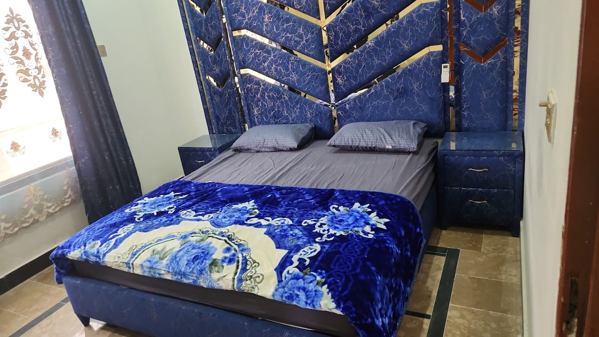 Luxurious place to stay in the center of Karachi. Located in Gulshan e Iqbal, Block 13-A which is connected to all important areas of the city. 2 Bedrooms available, both with attached bathrooms. A living room with a TV as well. All 3 of them air conditioned. Moreover, a Kitchen for the guest's use only. WiFi will also be provided. • 5 minutes from Expo Centre (1.8 km) • 4 minutes from Civic Center (1.7 km) • 7 minutes from Agha Khan hospital (3.5 km) • 9 minutes from Liaquat National (4.2 km)
