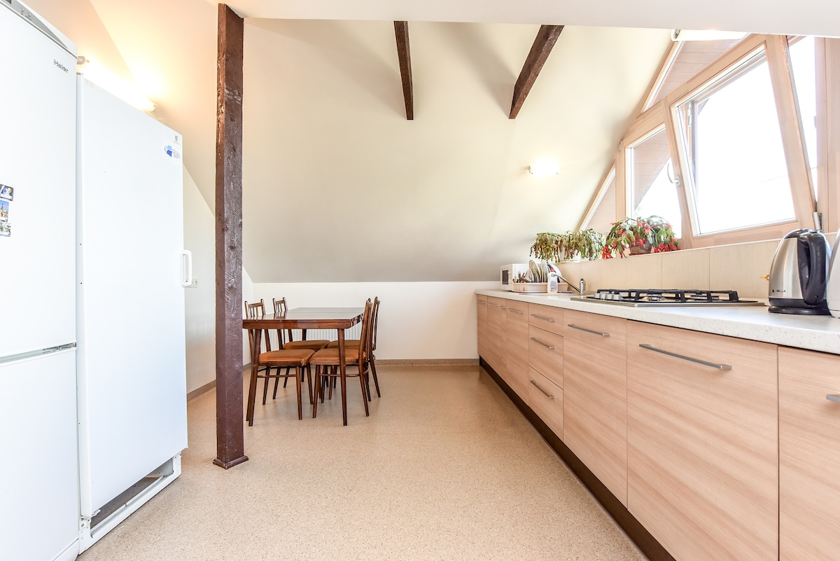 Welcome to the stylish cottage house in Palanga, just a 10-minute walk to the beach. This apartment features all the basic amenities you will need: a fully furnished kitchen with a dishwasher, a living room with a TV equipped with Netflix and Go3, 2 bathrooms (one with a shower), a washing machine, a queen-sized bed, and 3 more single beds to accommodate two families or a large group of friends perfectly. Book your stay now and enjoy an amazing retreat in our new modern cottage!