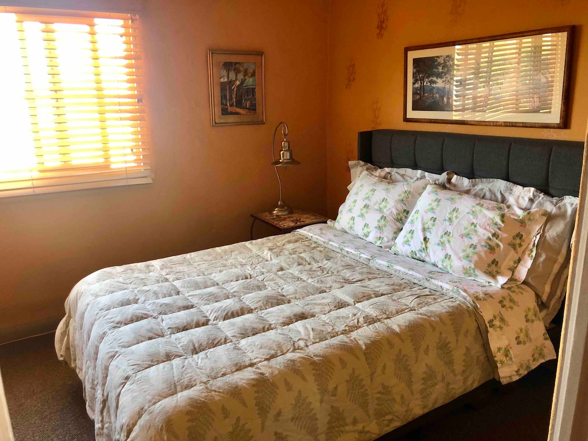Recently remodeled suite in the lower level of my home! Great for long term traveling Medical Professionals! Private Bedroom/Living Room/Bathroom Suite in a convenient GJ location. Unique house, (Frank L Wright 'Usonian House'), wall of windows, suite opens to sub-level yard & patio. Close to CO Mesa Univ & St Mary's Hospital. Wi-fi, queen bed, desk, off street parking, and private entrance. Restaurants, shops & activities nearby. Using safe Covid practices! Accept guests over 25 yrs only.