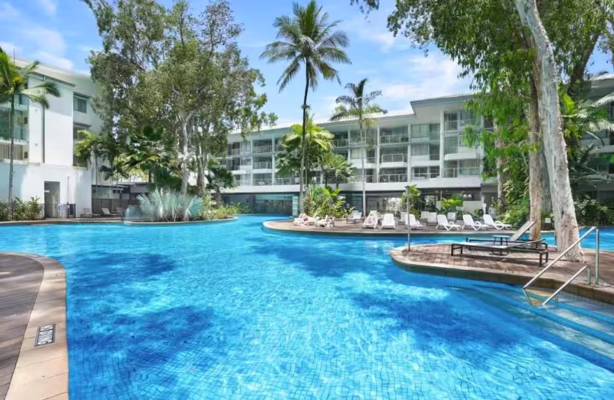 My ground-floor apartment overlooks the massive tree-lined pool of the "Drift" resort, and might well be the most sought-after in the complex. The Resort is across the road from the beach at Palm Cove and is surrounded by cafes & restaurants, and has easy access to golf courses, nearby adventure-sports, and the iconic Great Barrier Reef & Daintree Rainforest. Palm Cove lies on a palm-fringed 4km stretch of sandy coastline 20 minutes north of Cairns CBD & Airport.
