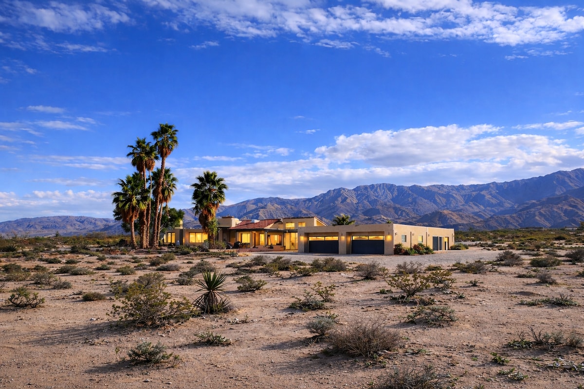 Modern desert cabin folded into 9 acres of boulders and brush. Coyotes pass like rumors. Quail patrol the mornings. Lizards claim the decks by noon. The architecture is clean, intentional plywood, steel, sky. Hot tub, outdoor shower, firepit, and Starlink (if the ravens allow it). Near Joshua Tree, the Integratron, and Pappy & Harriet’s. Featured in Dwell. Built for stillness. Permitted for it too: STVR 362-22.
