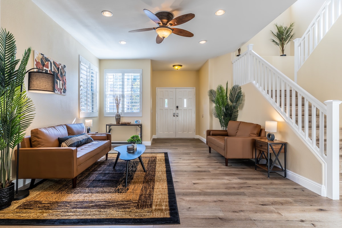 - 5 bedroom / 3 bathroom hilltop home - COMMUNITY POOL (located 3 min drive away) - Open Lease: Unlimited availability guaranteed (2 week notice required upon checkout) - Pets welcomed (no additional fee) - NO Parties nor loud music (you will forfeit your stay if there are any noise complaints) - Design: Mediterranean aesthetic meets mid-century modern - Location: A quiet & safe neighborhood of $1M+ single-family homes