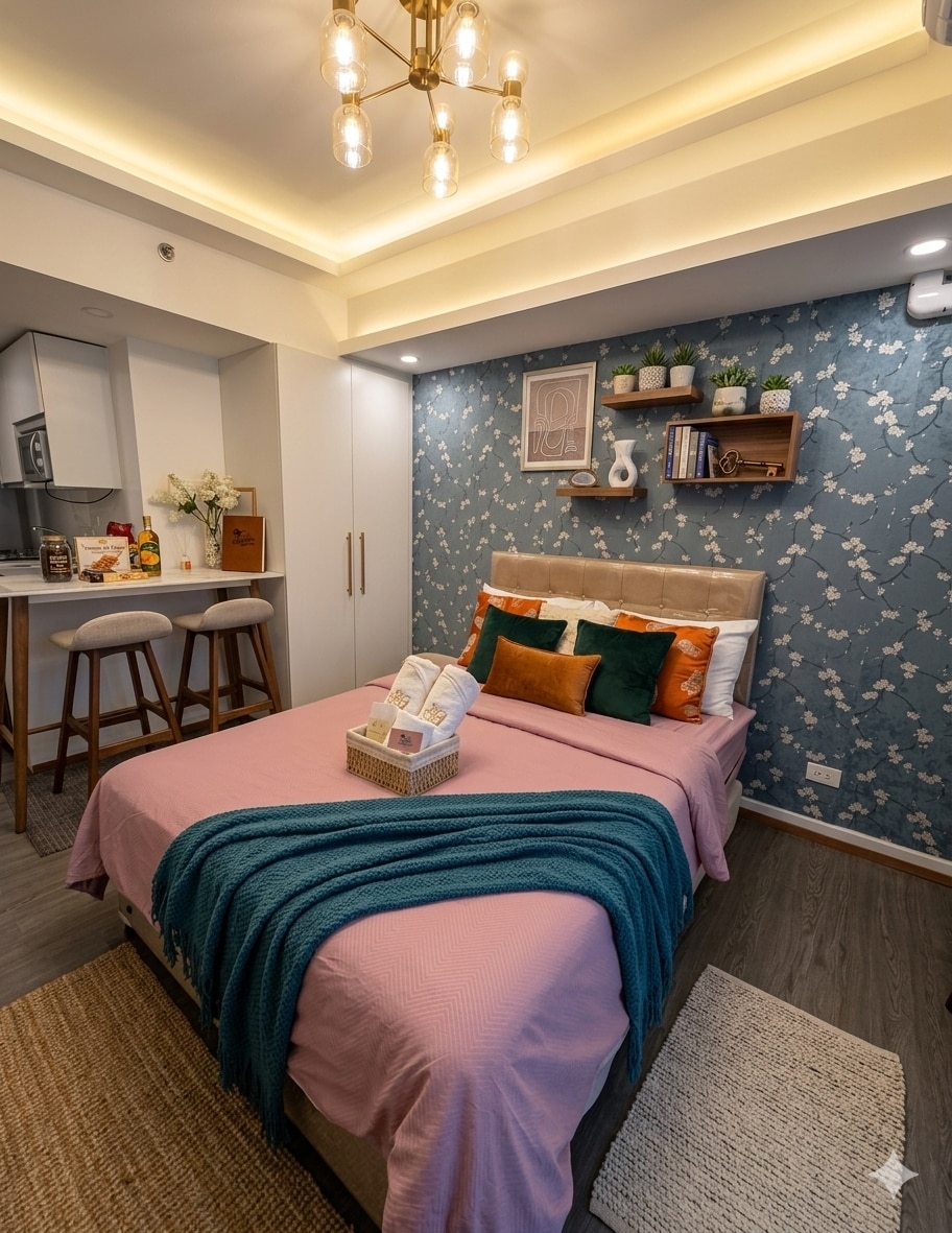 This is Clark's Newest Designer's Suites that was conceptualized for travellers, couples and friends to experience a new level of staycation in this eclectic-themed villa stay in Clark 10 mins away from Clark Airport 3 mins away to SM Clark 1 min to KoreanTown Enjoy this well-designed unit while taking IG worthy photos in our custom solihya couch with Netflix, A 360° view of Clark Airport Vanity mirror Premium bedroom Window Pod is located in Restituta Bldg, Friendship Hi-way, Angeles City