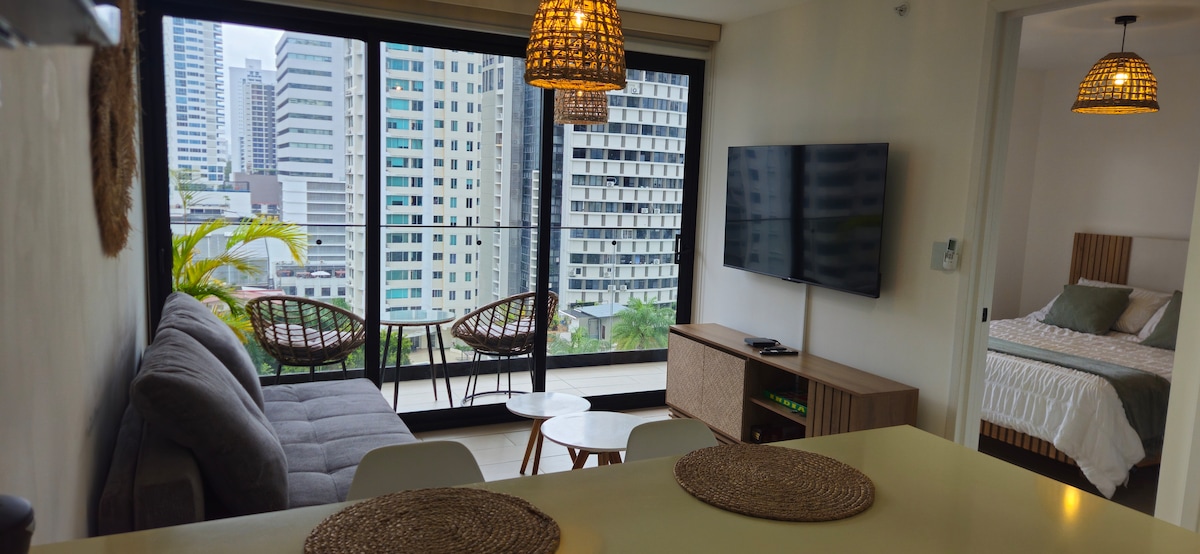 Enjoy a stay in one of the most exclusive areas in the center of Panama, few minutes from Casco Viejo the Cozy Apartment City Center offers free WiFi, air conditioning and stunning views amidst skyscrapers. The apartment has one bedroom with a queen-size bed, a bath and shower, a sofa bed, two smart TV, a fully equipped kitchen, a washer and dryer, and a half bath. On the property there is a work area, a gymnasium, a community pool, and a barbeque area FREE PARKING