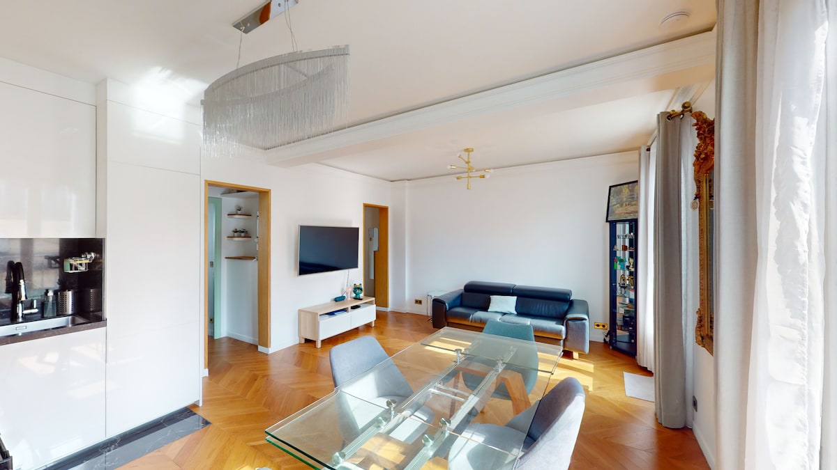 Discover this magnificent 90m² air-conditioned apartment, designed like a hotel suite and boasting a beautiful 25m² private terrace in the heart of Paris's 8th arrondissement. Completely renovated by an architect, it is located on the 5th floor (with elevator) of a traditional building with excellent security. It's the ideal place for a memorable stay in the capital.