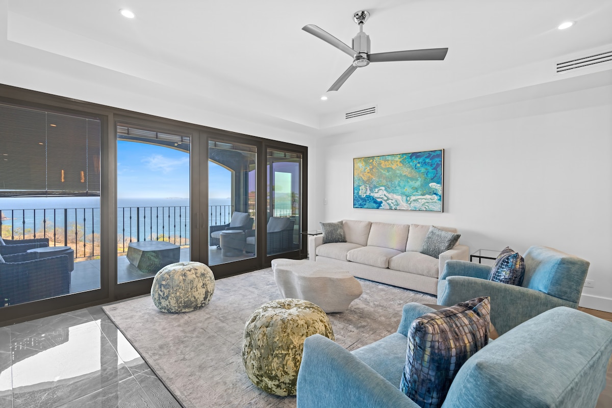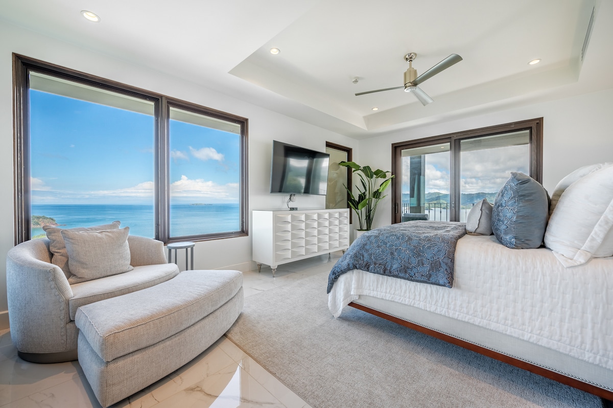 This magnificent 5,500-square-foot villa offers an unparalleled living experience with breathtaking views of both the bay and beach.
