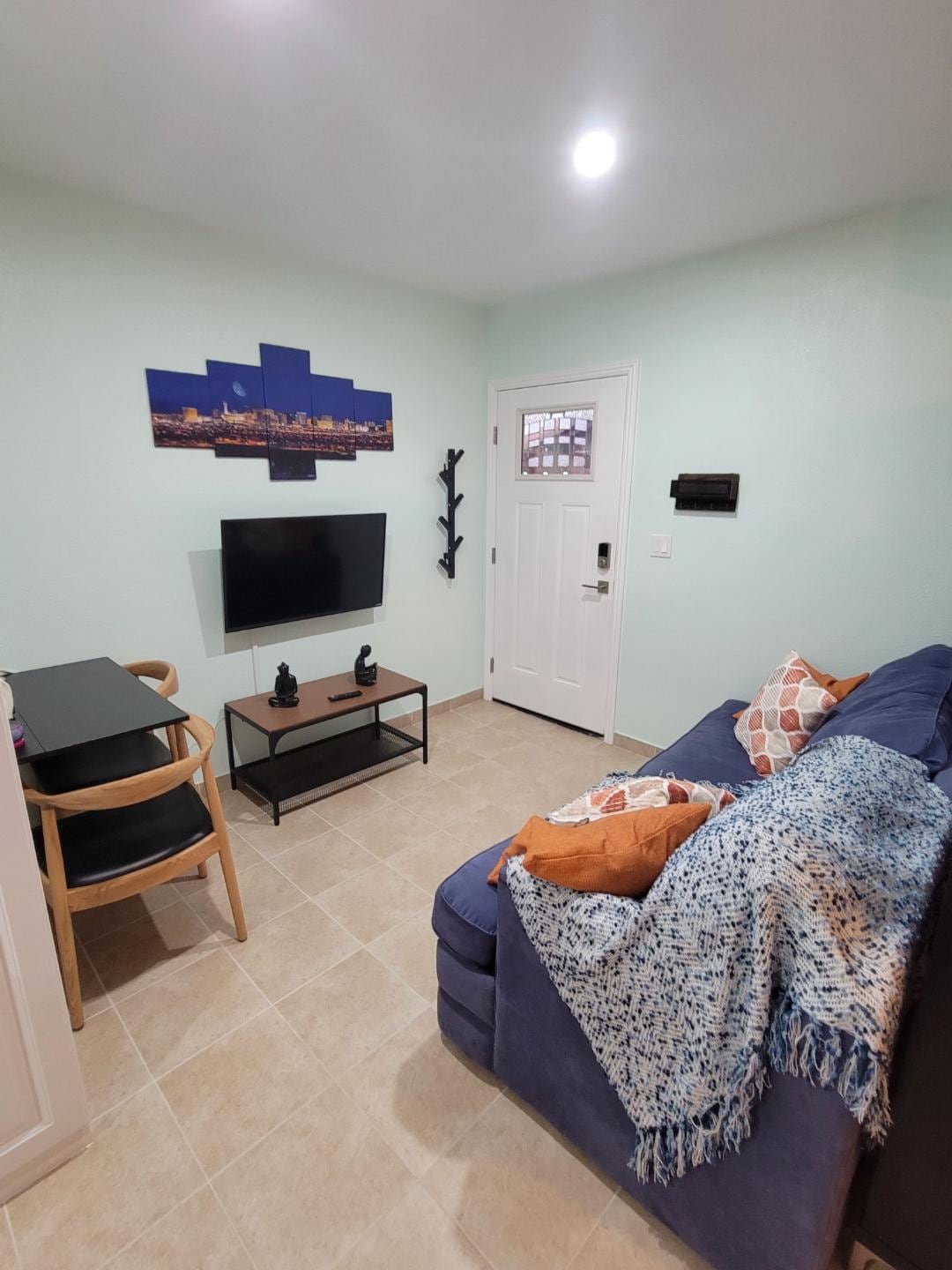 Luxury Guest House with full kitchen and home amenities, comes with a queen luxury mattress bed with a Futon Sofa bed that can accommodate one more adult or 2 children. The place is a guest house with it’s own private entrance on the side of the house can’t missed the pavers way leading you to the entrance gate. 5 mins from the airport and 5-10 mins to the strip it is a great location. We’ve got cameras, for your protection and ours we have cameras filming only the front of the property.