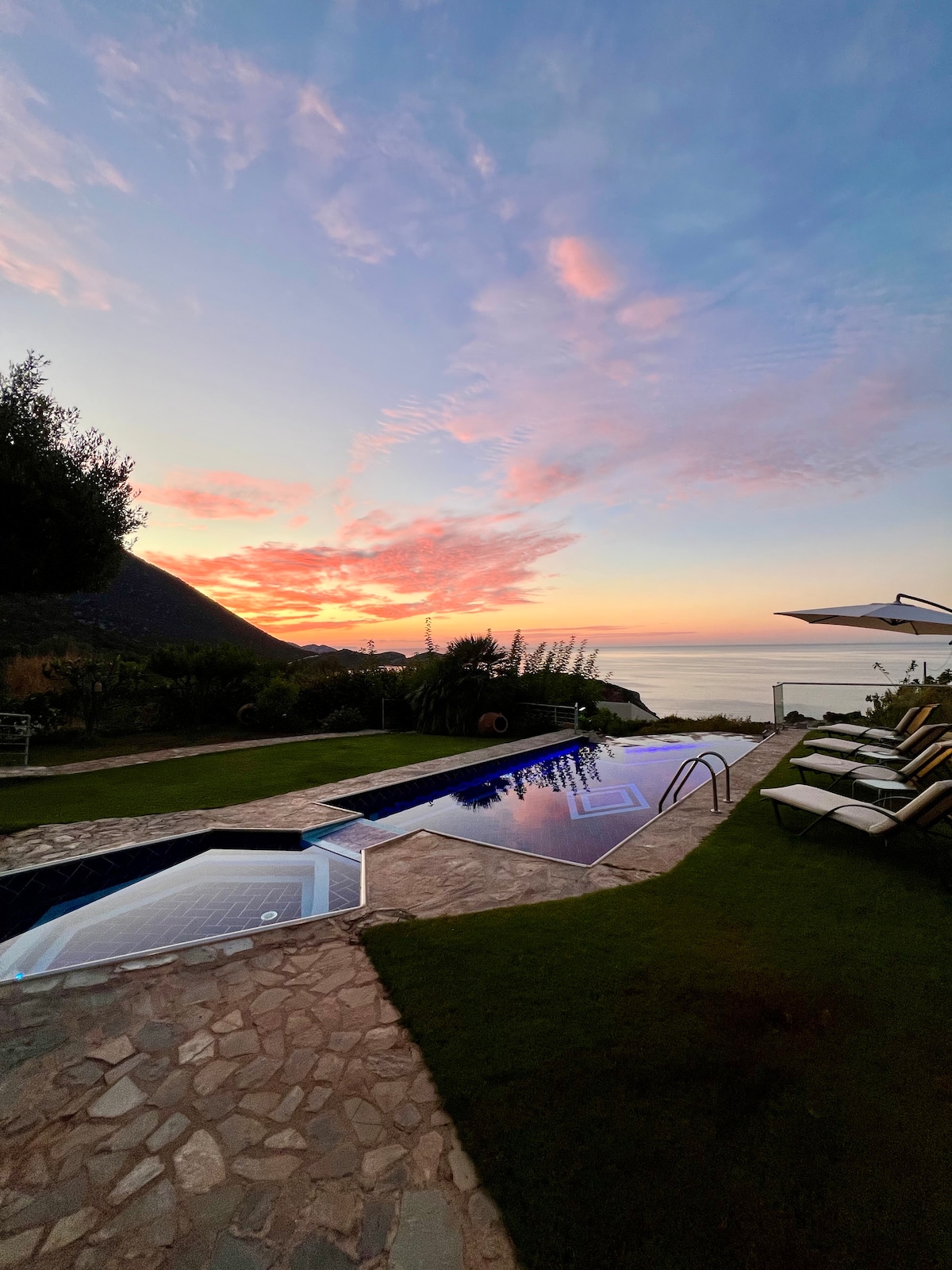 Jasmin luxury Villa built on May 2019 ★25m2 Private Heated Glass infinity pool ★ Outdoor heated Jacuzzi (3Pers) ★1 Double Bed ★ Big Sofa-bed for 2 pers ★1 Extra Bed ★2 Smart TV's ★ Big garden with flowers and FREE vegetables ★BBQ area ★ Free Internet-Wifi ★Walking distance to restaurants and market ★5min drive to Gerani or Episkopi Sandy beach ★Welcome Box ★Stunning sea view,sunrise,quiet area & surrounded by nature ★Panoramic view of Gerani bay
