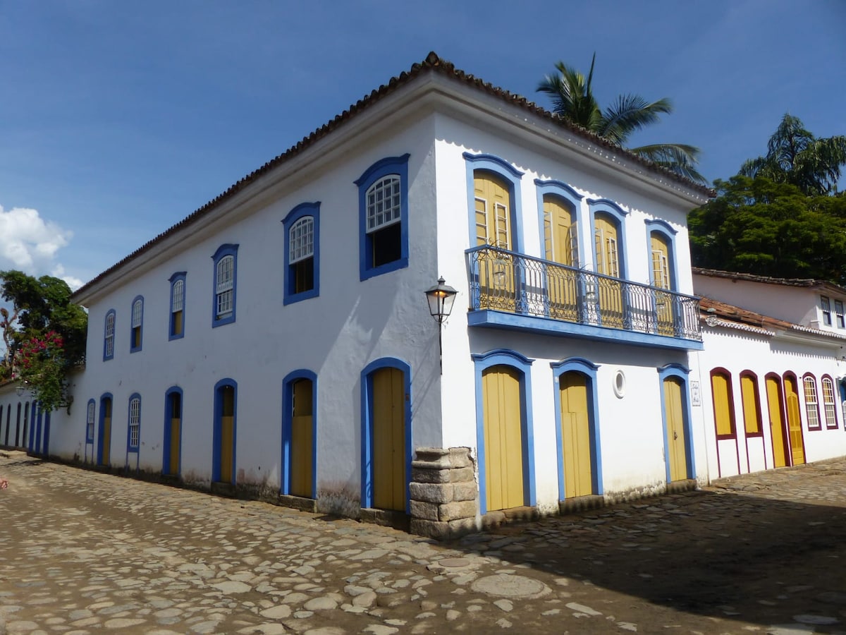 Casa no coração do Centro Histórico de Paraty. Temos 4 suítes com banheiro privativo, cozinha equipada, ar condicionado split em todos os ambientes, e um belo jardim. Estamos ao lado do mar, do cais, e a poucos metros dos melhores restaurantes, lojas e principais pontos turísticos da cidade.